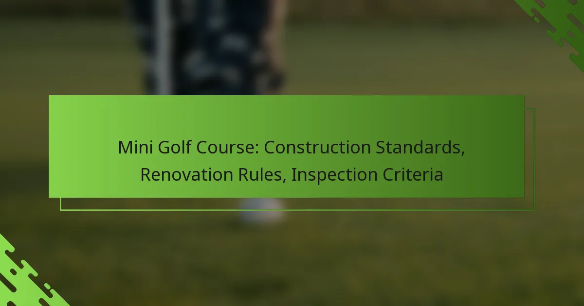 Inspection criteria for mini golf courses focus on safety, maintenance, and compliance with local regulations. Regular inspections help ensure that the course remains safe and enjoyable for players while adhering to established standards.